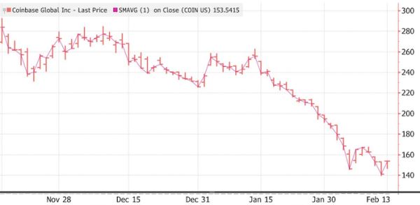 Акции Coinbase. Источник: Bloomberg