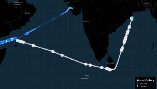 Согласно данным отслеживания судов, судно Indri (Suezmax), находившееся в Аравийском море и следовавшее, по заявленным данным, в Сингапур, на этой неделе резко повернуло на север, в сторону Индии, имея на борту около 730 000 баррелей нефти сорта Urals. Все три судна — Odune, Matari и Indri — в прошлом году попали под санкции Великобритании и Европейского союза.